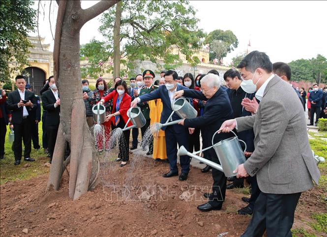 Tổng Bí thư, Chủ tịch nước Nguyễn Phú Trọng trồng cây tại Hoàng thành Thăng Long
