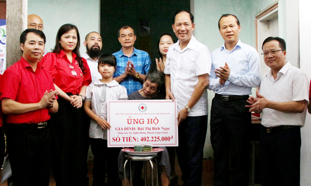 Chia sẻ với hoàn cảnh của Ngọc, Hội CTĐ tỉnh phối hợp với Báo điện tử Dân trí, CLB Báo chí Bắc Giang tại Hà Nội kêu gọi bạn đọc, doanh nghiệp, nhà hảo tâm ủng hộ gia đình em hơn 402 triệu đồng cùng nhiều đồ dùng trong gia đình.