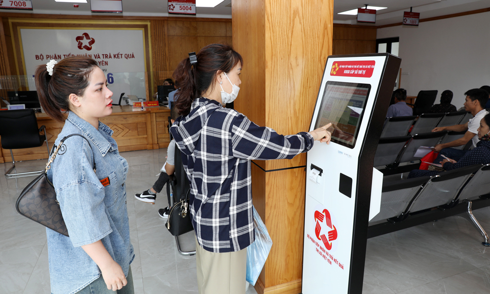 Công dân làm thủ tục đăng ký giải quyết thủ tục hành chính tại bộ phận tiếp nhận và trả kết quả của thị xã Việt Yên. |