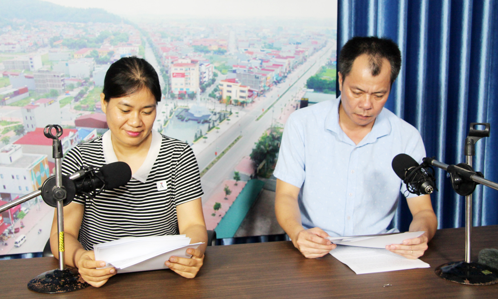 Phóng viên Trung tâm Văn hóa - Thông tin và Thể thao huyện Yên Dũng sản xuất chương trình phát thanh về giảm nghèo. |