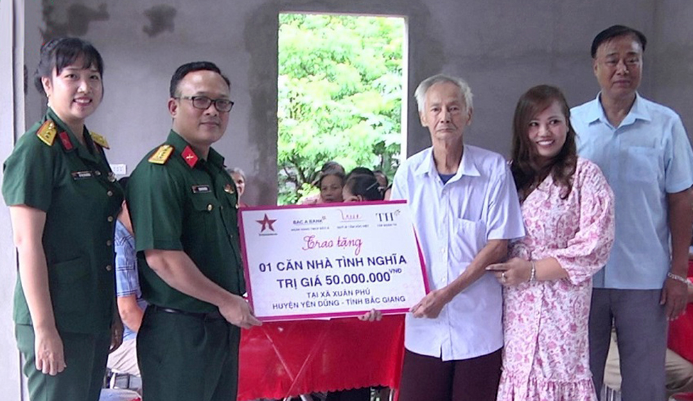 Báo Quân đội nhân dân cùng các nhà tài trợ trao 50 triệu đồng hỗ trợ xây dựng nhà tình nghĩa cho ông Phan Văn Thế - hộ nghèo ở thôn Đình Phú, xã Xuân Phú. |
