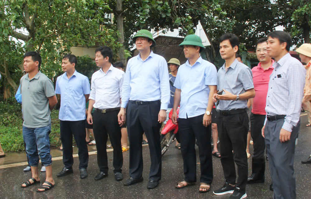 Các đồng chí lãnh đạo tỉnh Bắc Giang kiểm tra, chỉ đạo khắc phục hậu quả mưa bão tại huyện Lục Ngạn