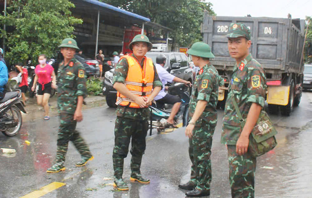 Lực lượng quân đội trực hỗ trợ người dân tại xã Giáp Sơn (Lục Ngạn). |