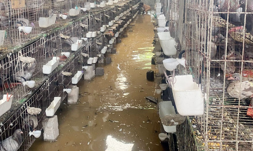 Chuồng chim bồ câu tại xã Đông Sơn (Yên Thế) bị nước lũ tràn vào, phải di chuyển đến nơi khác. |