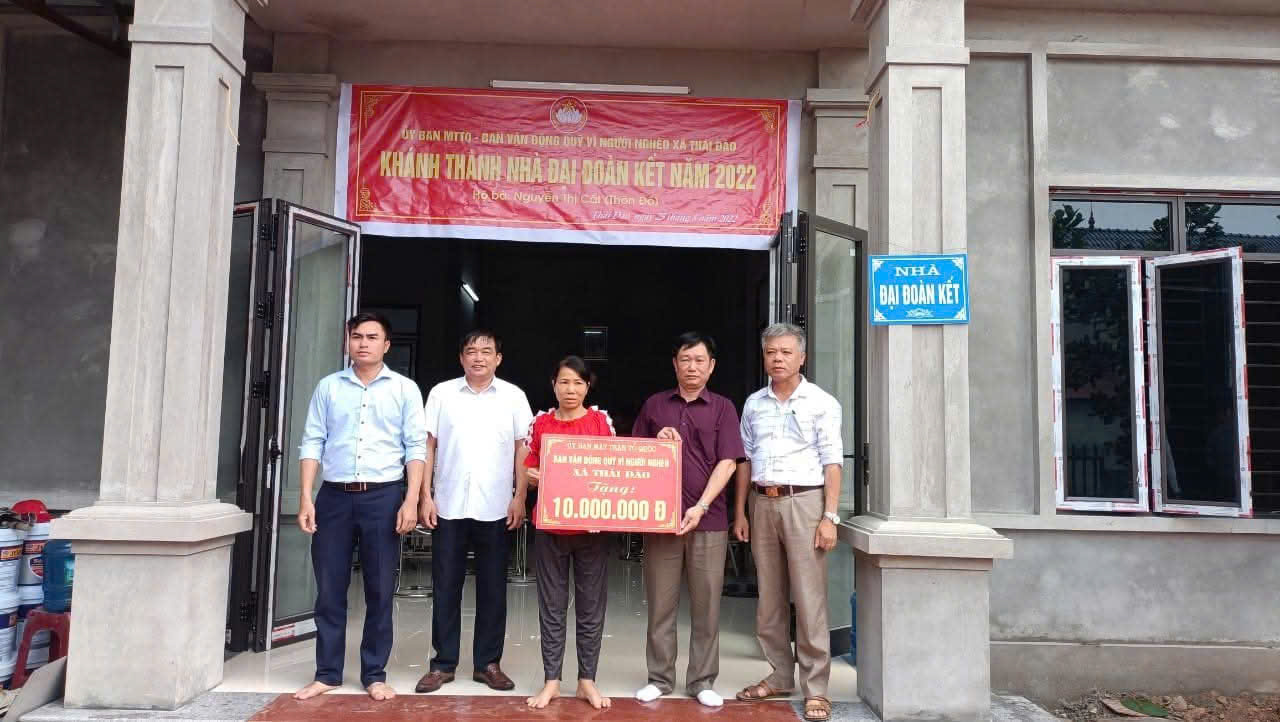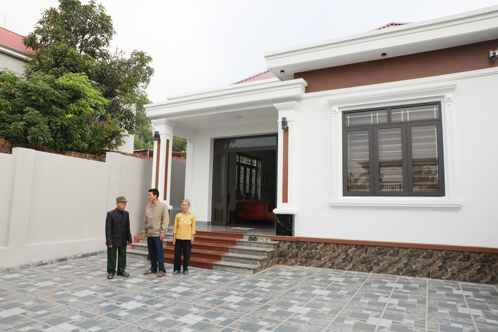 Xã Tân Dĩnh được thành lập trên cơ sở hợp nhất 3 xã: Tân Dĩnh, Thái Đào và Đại Lâm, với tổng diện tích tự nhiên là 31,97 km2 , dân số hơn 35.370 người sinh sống ở 38 thôn. Giao thương thuận lợi, kinh tế phát triển, cấp uỷ, chính quyền xã quan tâm lồng ghép các nguồn lực để thực hiện an sinh xã hội. Gia đình ông Nguyễn Văn Chiến và bà Giáp Thị Tuất (67 tuổi) ở thôn Gốm là hộ cận nghèo nhiều năm nay. Căn nhà cũ xuống cấp, hư hỏng nhiều khiến hai ông bà luôn thường trực nỗi lo mỗi khi mưa bão. Thực hiện chương trình xoá nhà tạm, nhà dột nát, đầu năm 2025, gia đình ông được hỗ trợ 45 triệu xây nhà. Với hộ cận nghèo lại tuổi cao như ông bà thì kinh phí đối ứng làm nhà là cả vấn đề. Nắm bắt được nỗi lo của gia đình, cán bộ thôn đã gặp gỡ, vận động người thân của ông Chiến chung vai giúp đỡ. Nhờ vậy, công trình được khởi công và hoàn thành đưa vào sử dụng mới đây với diện tích 70m2, tường gạch, mái tôn, nhà vệ sinh khép kín. Ông Trần Văn Thụ, trưởng thôn cho biết: "Để công tác hỗ trợ đạt hiệu quả, chúng tôi tổ chức họp, thông báo công khai danh sách hộ được đề nghị hỗ trợ, bảo đảm khách quan. Cùng đó huy động các hội đoàn thể giúp ngày công lao động. Những ngày thi công dù thời tiết nắng nóng song nhiều đoàn viên, hội viên phụ nữ, thanh niên thường xuyên có mặt, giúp đỡ tháo dỡ, vận chuyển vật liệu. Qua kết quả rà soát sơ bộ năm nay, thôn còn 1 hộ nghèo, 1 cận nghèo”. Phấn khởi khi có căn nhà mới, ông Chiến chia sẻ, hai ông bà có 3 người con nhưng kinh tế cũng không khá giả. Bản thân ông bà sức khỏe yếu. Nay có ngôi nhà vững chắc để ở, hai ông bà yên tâm khi mùa mưa bão đến. Từ năm 2024 đến nay, xã phối hợp hỗ trợ xây mới, sửa chữa 8 nhà "Đại đoàn kết” cho hộ nghèo với tổng số tiền trị giá trên 500 triệu đồng và trên 300 ngày công; tổ chức thăm, tặng hàng trăm suất quà dịp Tết Nguyên đán. Với sự chung sức đó đã góp phần giảm tỷ lệ hộ nghèo của xã ở cuối nhiệm kỳ 2020-2025 giảm còn 0,7% (theo chuẩn nghèo đa chiều giai đoạn 2021-2025).