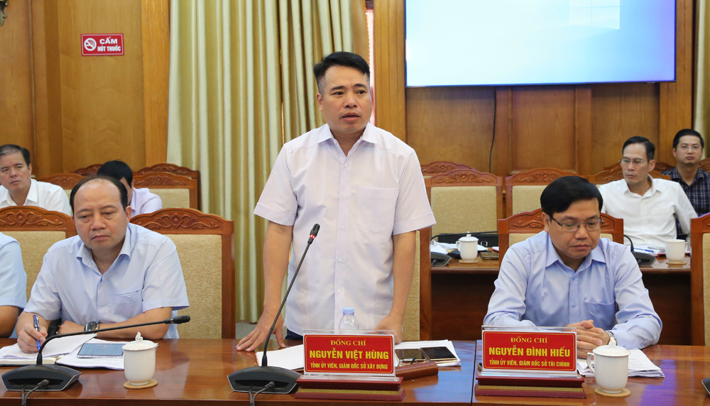 Đồng chí Nguyễn Việt Hùng, Giám đốc Sở Xây dựng phát biểu về tiến độ thực hiện các dự án. |