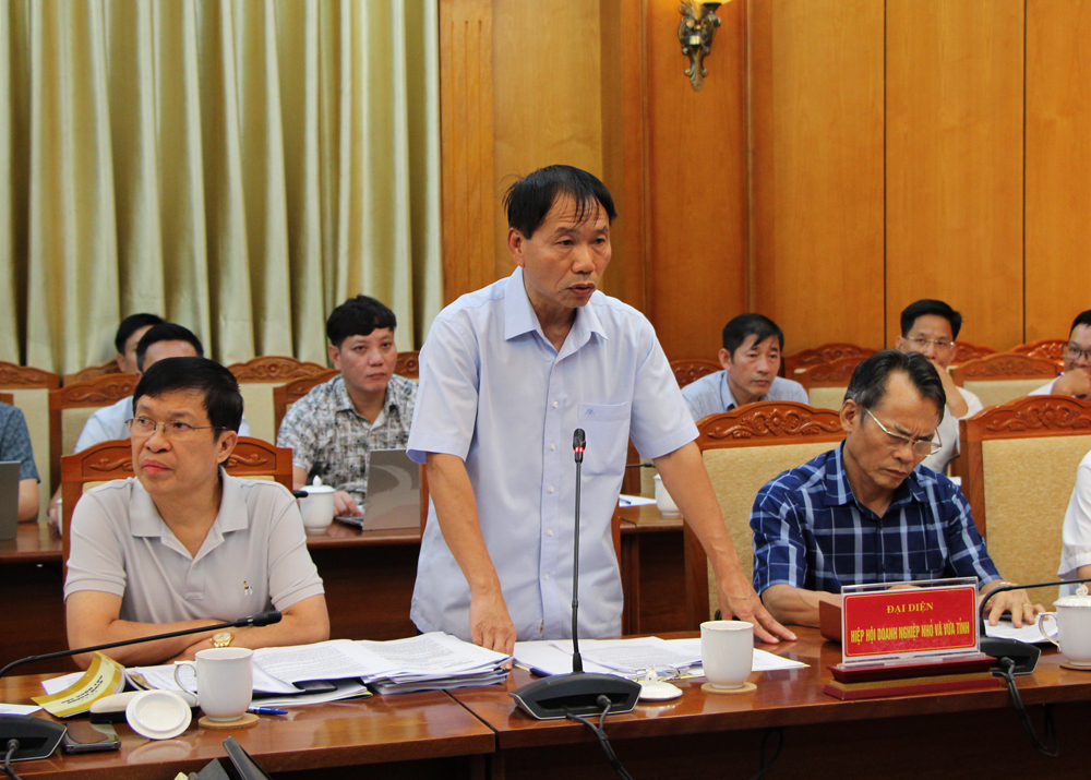 Đồng chí Nguyễn Cường, Phó Chủ tịch Hiệp hội Doanh nghiệp tỉnh phát biểu tại hội nghị. |