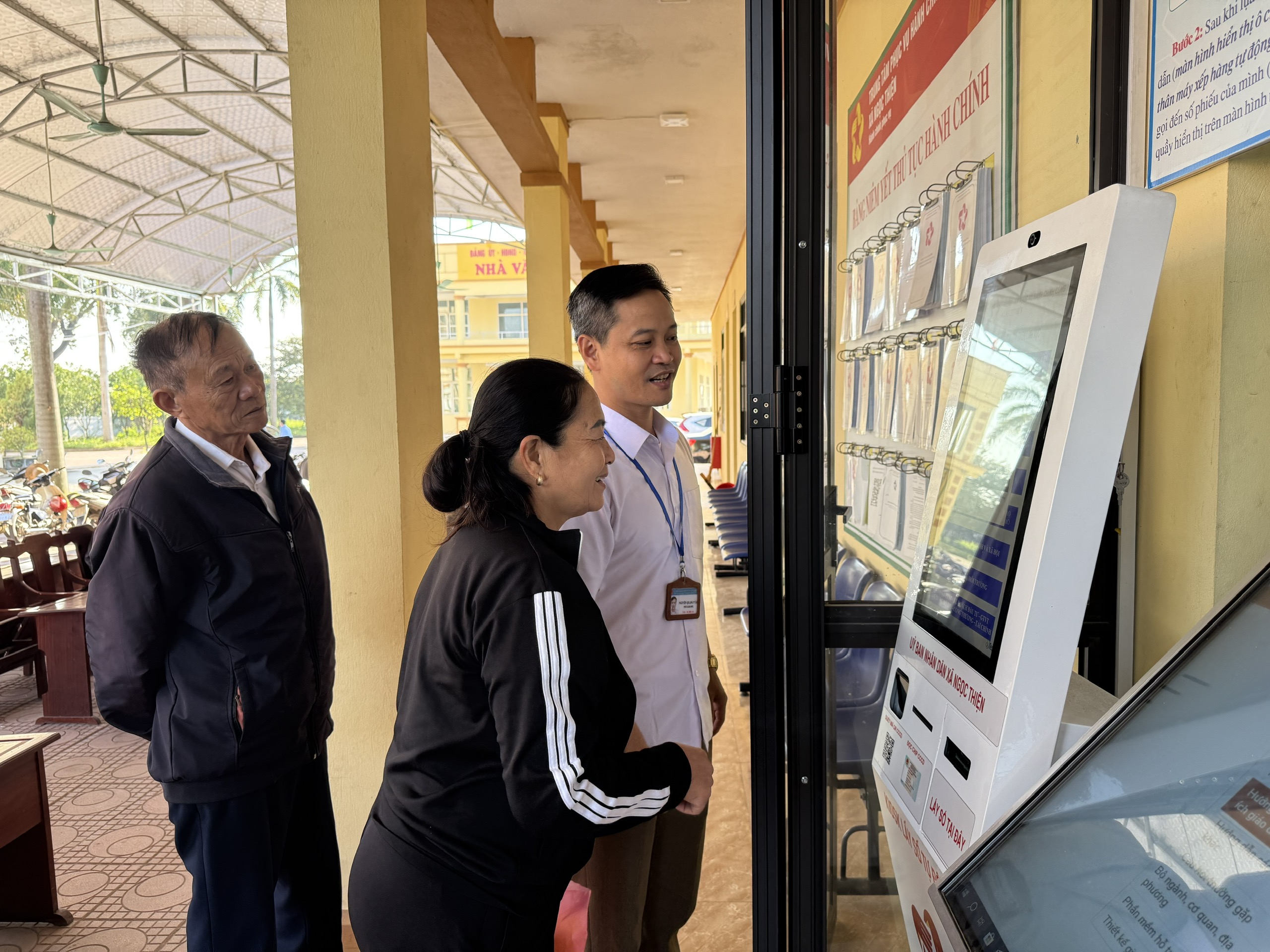 Cán bộ xã Ngọc Thiện hướng dẫn nông dân làm thủ tục vào làm công nhân các công ty trên địa bàn xã.